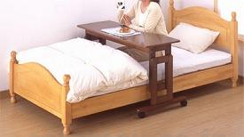 ●商品仕様 ●サイズ/幅118×奥行58.5×高さ65〜80(6段階/3cm)cm、天板:奥行43cm ●キャスター径/φ5cm ●重さ/14kg ●材質/本体:天然木、天板:MDF ●耐荷重/15kg ●生産国/日本●JAN 4955412300247● ベッド関連 サイドテーブル・ベッドサイド手すり サイドテーブル介護 施設 福祉★